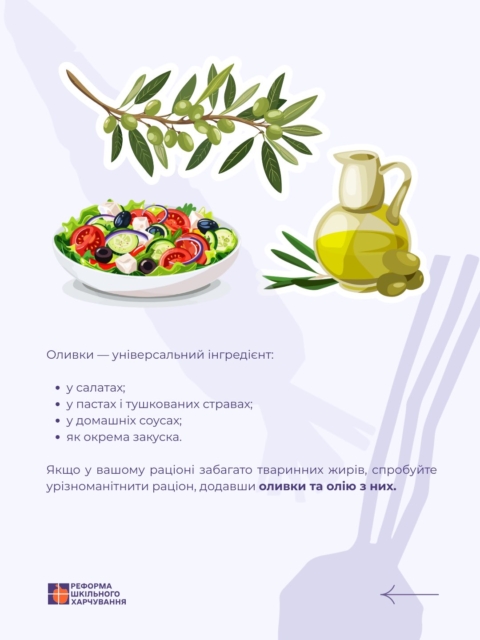 🫒 Та оливки цікаві тим, що за вегетативним розподілом — це фрукти! Ці маленькі плоди — цінна частина здорового харчування, особливо через високий вміст корисних ненасичених жирів.