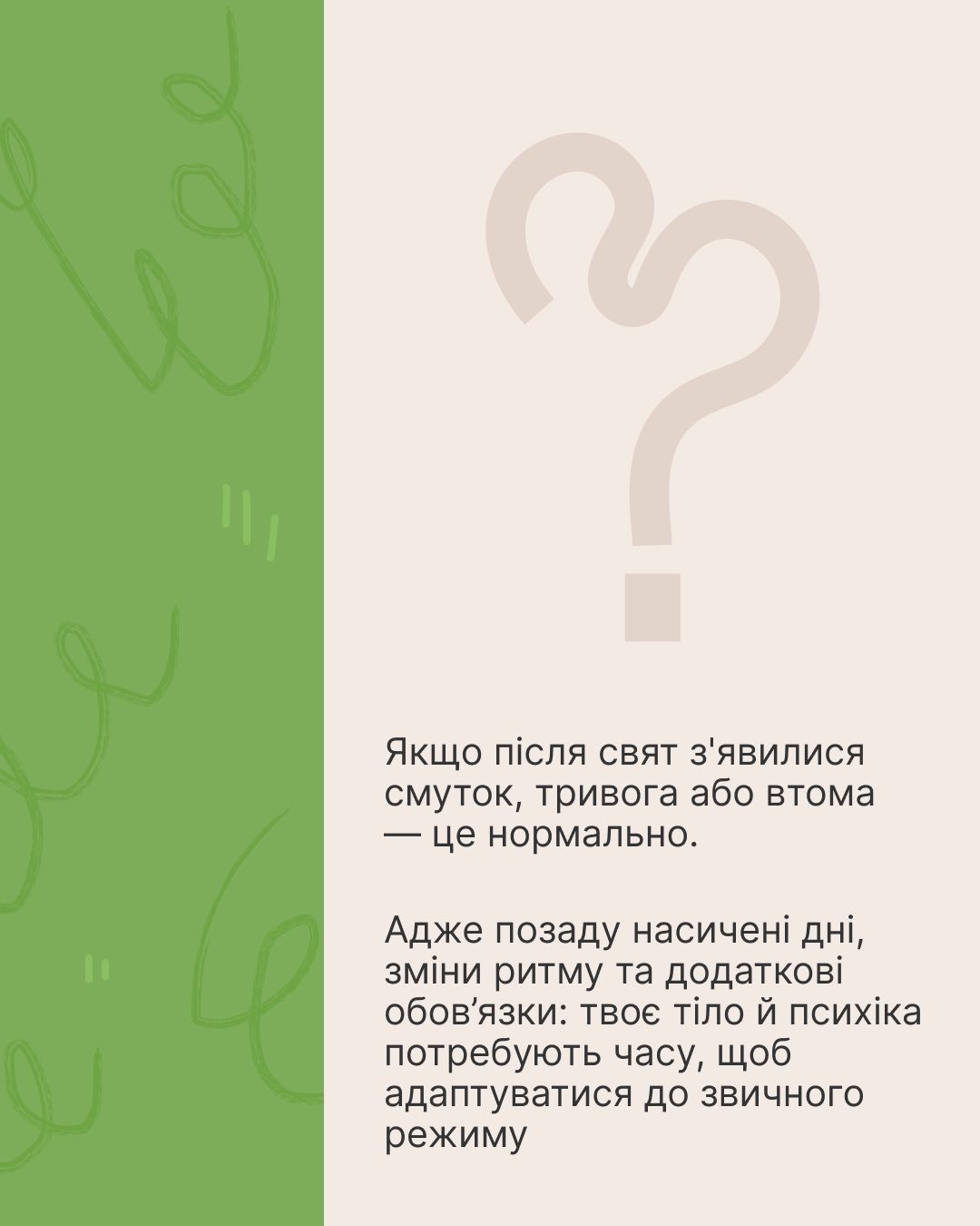 Адже мозок вже трохи звик до ейфорії святкових радощів, а ти різко намагаєшся повернути його у сірі будні