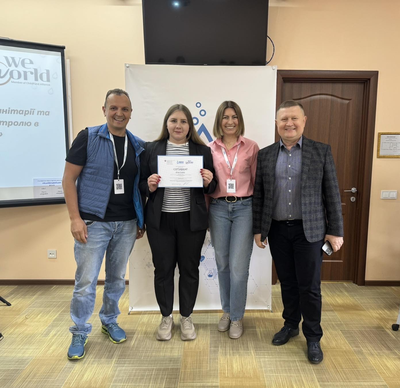 21 травня 2024Завершився тренінг з WASH (водопостачання, санітарія, гігієна), який проводився у м. Полтава в рамках проєкту «Increase the access to wash and health services facilities for the population in newly accessible areas of Eastern and South-eastern of Ukraine», що фінансується SDC та впроваджується Представництвом «WE WORLD G.V.C. – Соціально Орієнтованої Некомерційної Організації» в Україні. Від нашої установи у тренінгу взяли участь лікар з гігієни праці відділу епідеміологічного нагляду (спостереження) та профілактики неінфекційних хвороб ДУ «Харківський ОЦКПХ МОЗ» Наталя Осова, лікар-інтерн з епідеміології відділення антимікробної резистентності та інфекційного контролю відділу епідеміологічного нагляду (спостереження) та профілактики інфекційних хвороб Юлія Бойко, завідувач відділення епідеміологічного нагляду (спостереження) та профілактики неінфекційних хвороб Харківської міської філії Лілія Звягінцева, лікар з гігієни праці відділення епідеміологічного нагляду (спостереження) та профілактики неінфекційних хвороб Харківської міської філії Тетяна Паламаренко.