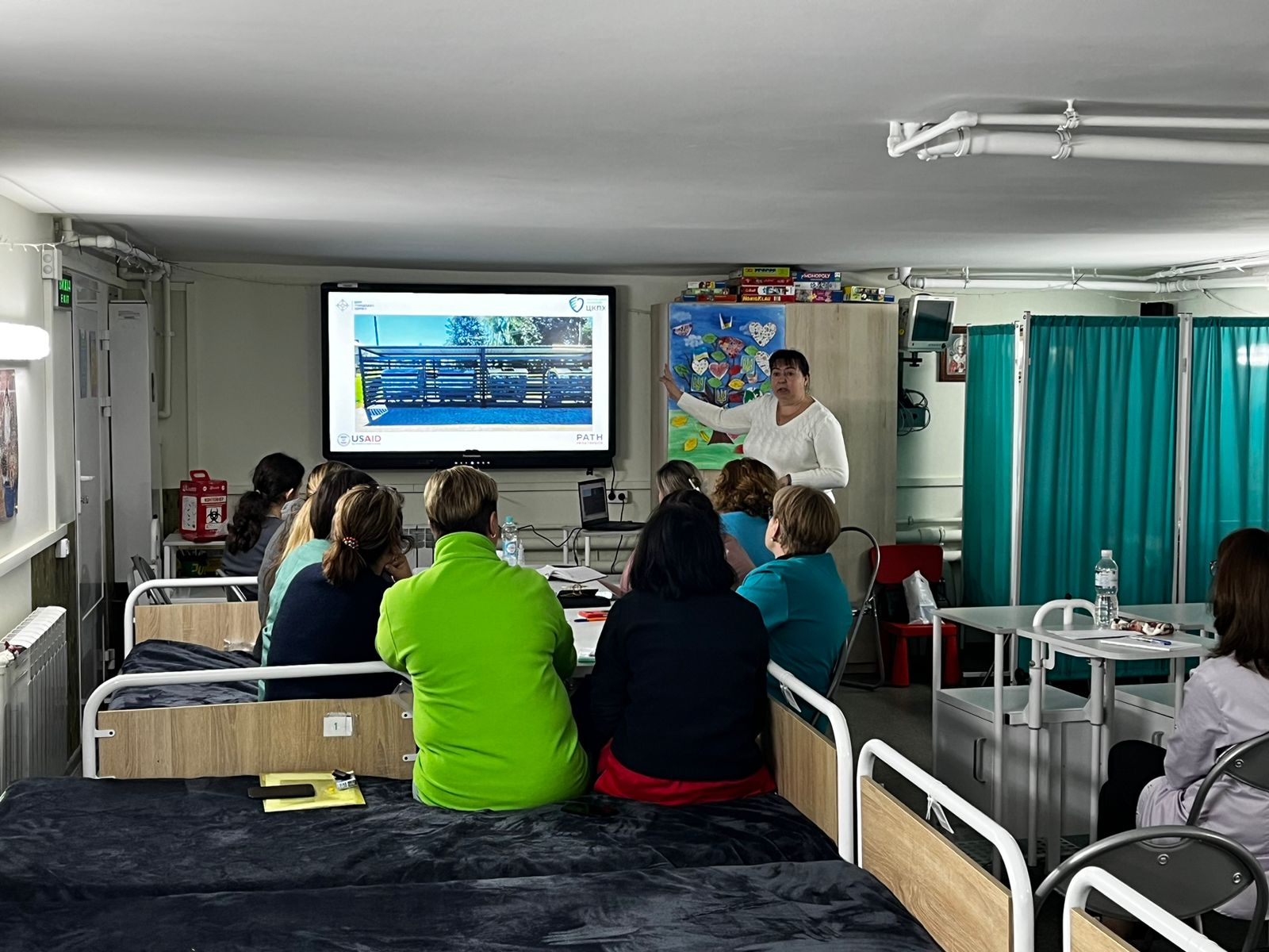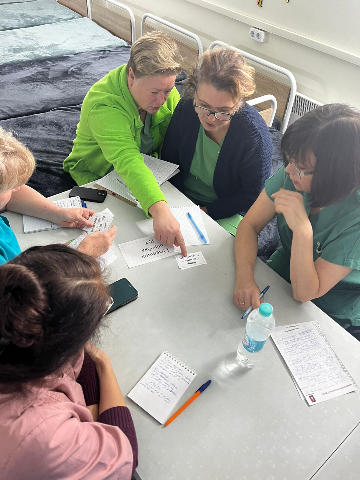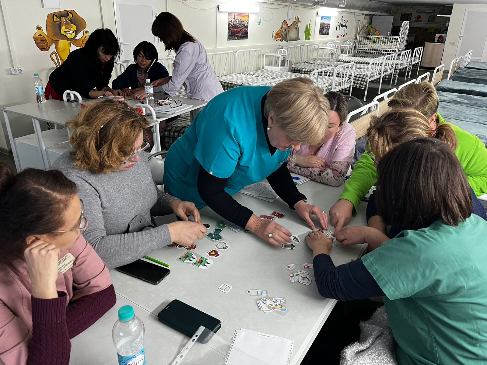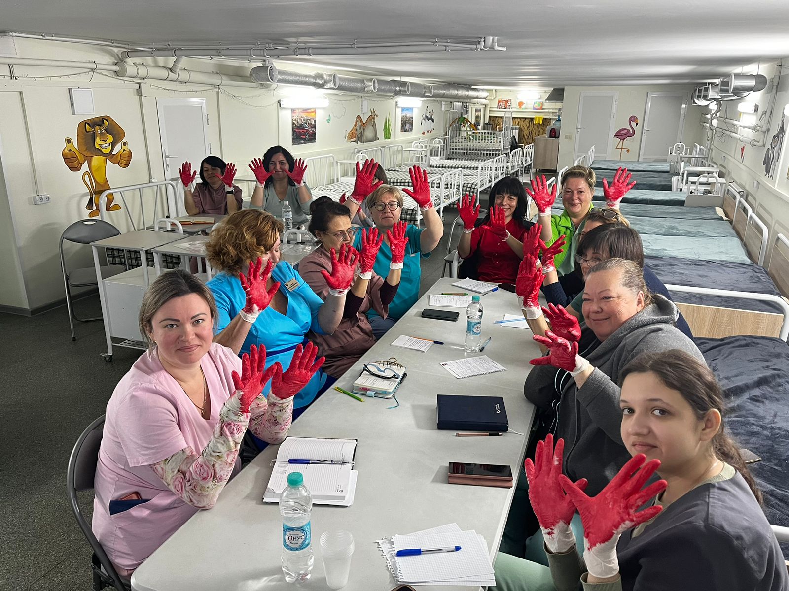 Фахівці відділення антимікробної резистентності та інфекційного контролю у бомбосховищі під звуки повітряних тривог провели тренінг з безперервного професійного розвитку для медичних працівників Харківської міської дитячої лікарні №5. Під час заходу вони удосконалювали свої знання з питань профілактики інфекцій та інфекційного контролю, поводження з медичними відходами, очищення та дезинфекції поверхонь, прийняли участь у майстер-класі з гігієнічної обробки рук, відпрацювали навички надягання та знімання медичних рукавичок.