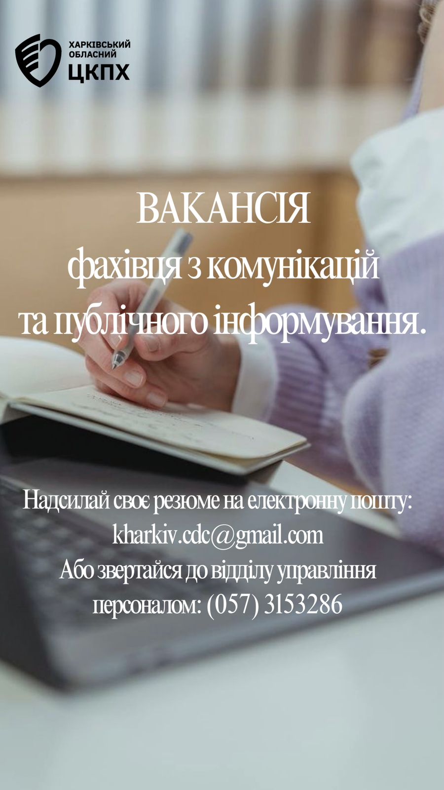 Харківський обласний центр контролю та профілактики хвороб шукає фахівців з комунікацій та публічного інформування.