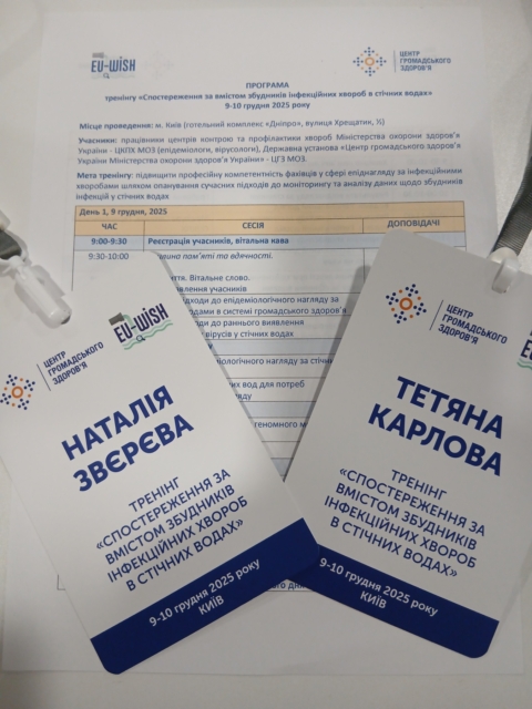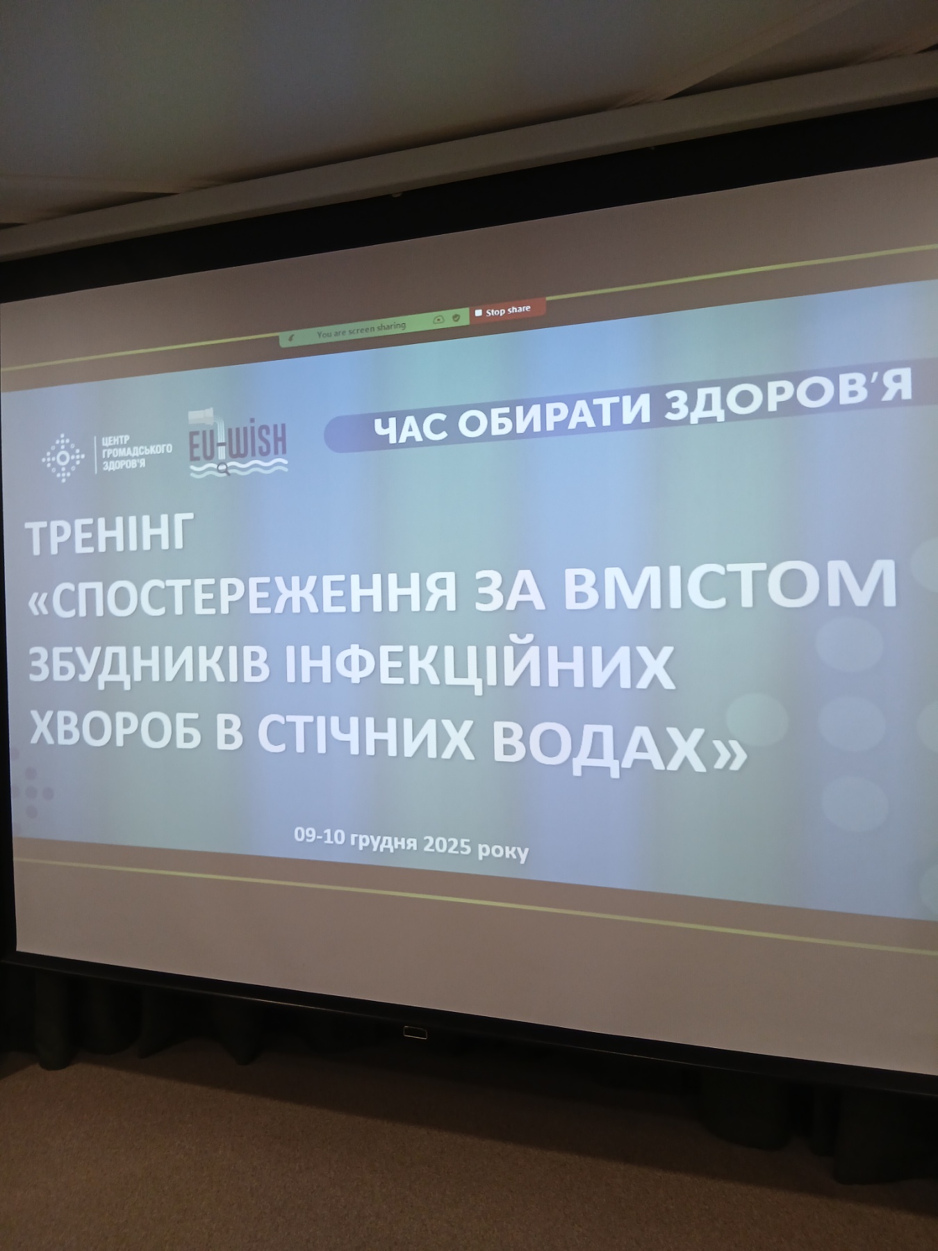 12 грудня 2025В рамках реалізації проєкту «EU-WISH «Спільна дія ЄС щодо інтегрованого моніторингу стічних вод для громадського здоров’я»» державна установа «Центр громадського здоров’я Міністерства охорони здоров’я України» провела 2-й тренінг для працівників центрів контролю та профілактики хвороб Міністерства охорони здоров’я України «Спостереження за вмістом збудників інфекційних хвороб в стічних водах», в якому взяли участь завідувач відділу епіднагляду та профілактики інфекційних хвороб Тетяна Карлова та завідувач вірусологічної лабораторії Наталія Звєрєва.