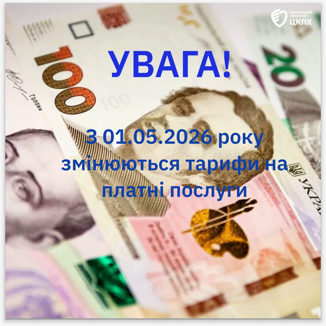 Увага! З 01.05.2026 року змінюються тарифи на платні послуги ДУ “Харківський ОЦКПХ МОЗ”