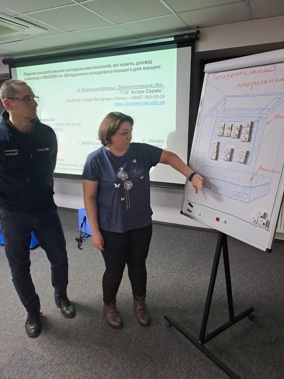 Учасниками навчання були фахівці пунктів щеплень, які у 2024 році отримали холодильники для зберігання вакцин у якості гуманітарної допомоги від ЮНІСЕФ. Під час тренінгу вони ознайомилися з ключовими вимогами ефективного управління вакцинами та здобули практичні навички.