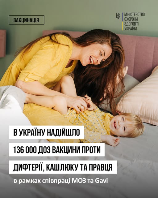 🚚 136 000 доз вакцини проти дифтерії, кашлюку та правця для вакцинації дітей доставлені в Україну.