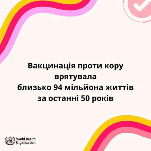 💉Вакцинація проти кору врятувала близько 94 мільйона життів за останні 50 років відповідно до даних Всесвітньої Організації Охорони Здоров’я (ВООЗ World Health Organization (WHO)