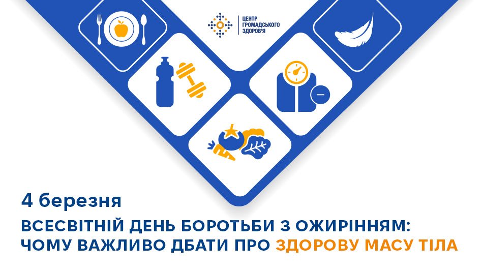 4 березня відзначають Всесвітній день боротьби з ожирінням. Це нагадування про ризики для здоров’я, які тягне за собою надлишкова маса тіла, а також про необхідність формувати здорові харчові звички на всіх етапах життя. 59,0% українців мають надлишкову масу тіла, а 24,8% — ожиріння. Про це свідчать результати дослідження поширеності факторів ризику неінфекційних захворювань в Україні у 2019 році (STEPS).