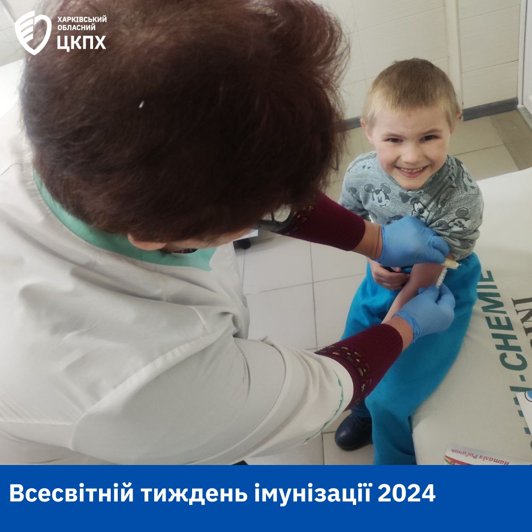 На підтримку Всесвітнього тижня імунізації в Україні з 24.04.2024 по 30.04.2024 також проводиться Український тиждень імунізації. Всі заходи цієї акції направлені на те, щоб нагадати людям про важливість щеплень та роз’яснити, як вакцини захищають від важких інфекційних хвороб дітей і дорослих.