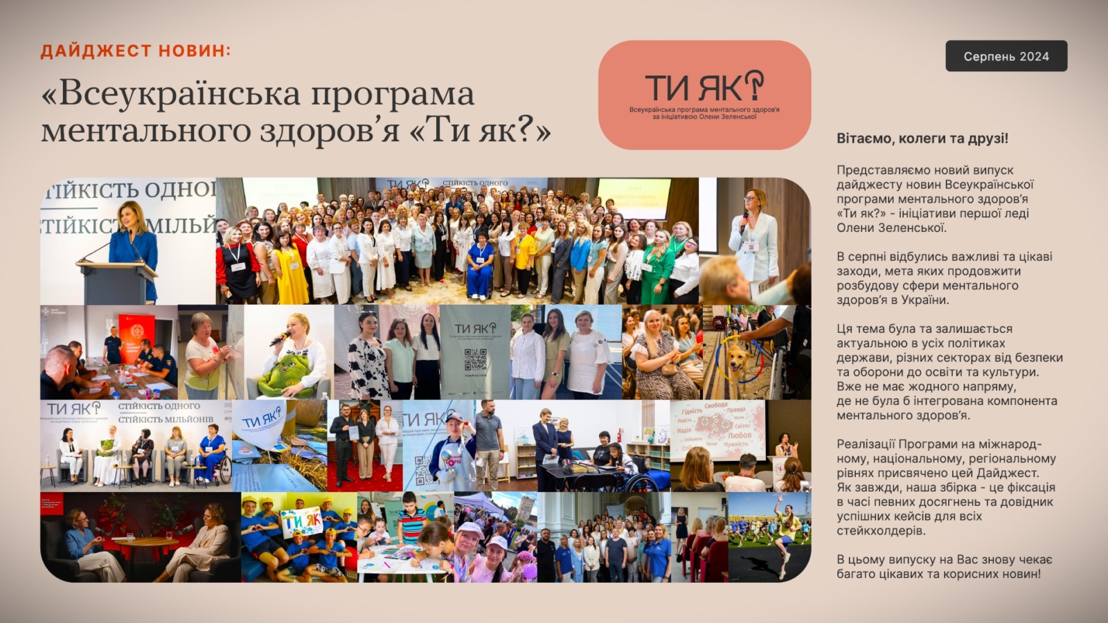 Дайджест новин: «Всеукраїнська програма ментального здоров’я Ти як? Регіональна координація». Серпень 2024.