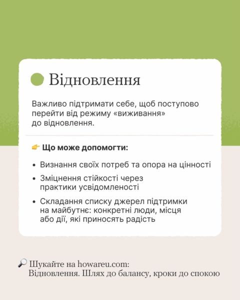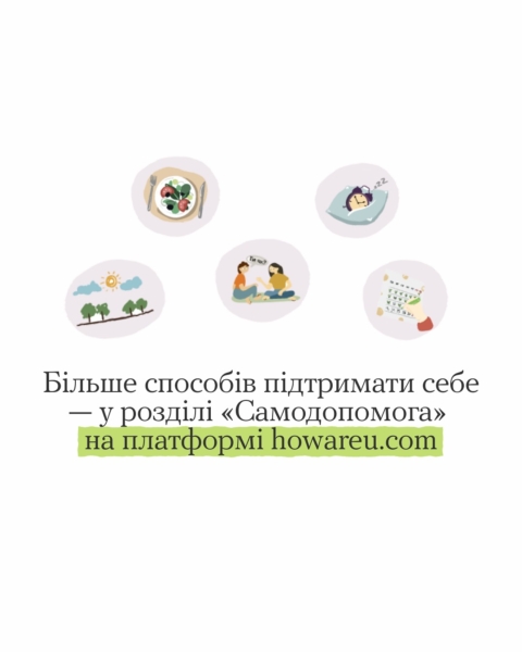 Їх можна знайти у розділі «Самодопомога» http://howareu.com/self-help?utm_source=facebook…, який постійно поповнюється ефективними інструментами для підтримки ментального здоров’я та плекання внутрішньої стійкості.