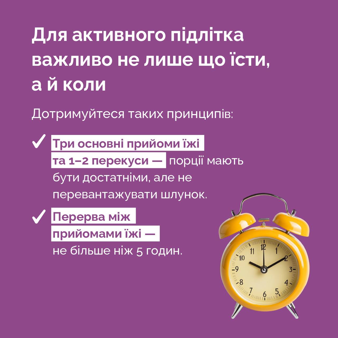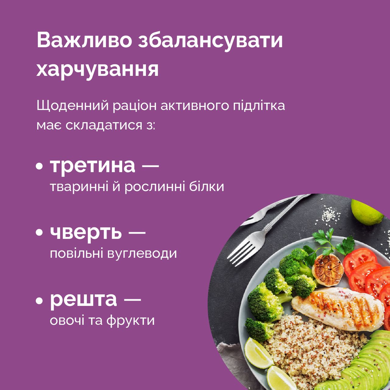 Дивіться на картках, як скласти раціон для активного підлітка.
