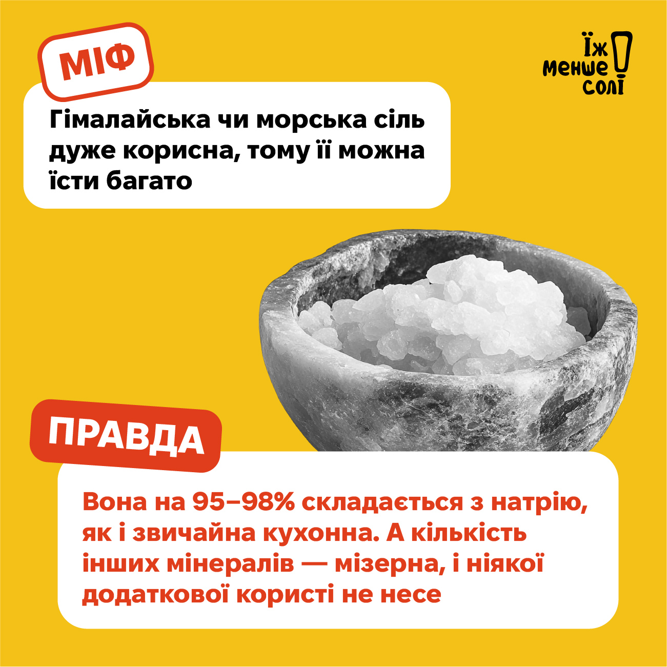🚫Міф: Гімалайська чи морська сіль дуже корисна, тому можна їсти багато
