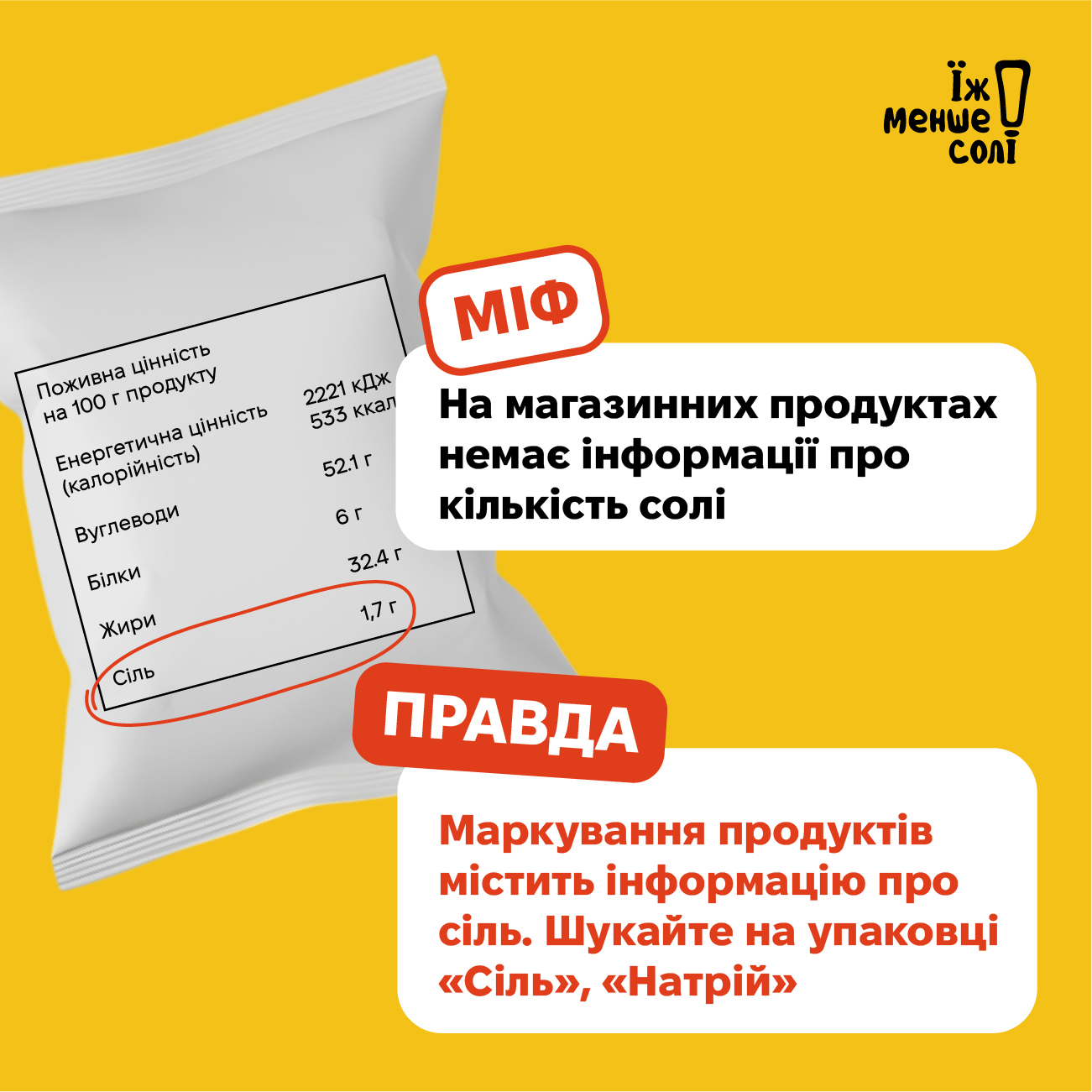 🚫Міф: На магазинних продуктах немає інформації про кількість солі