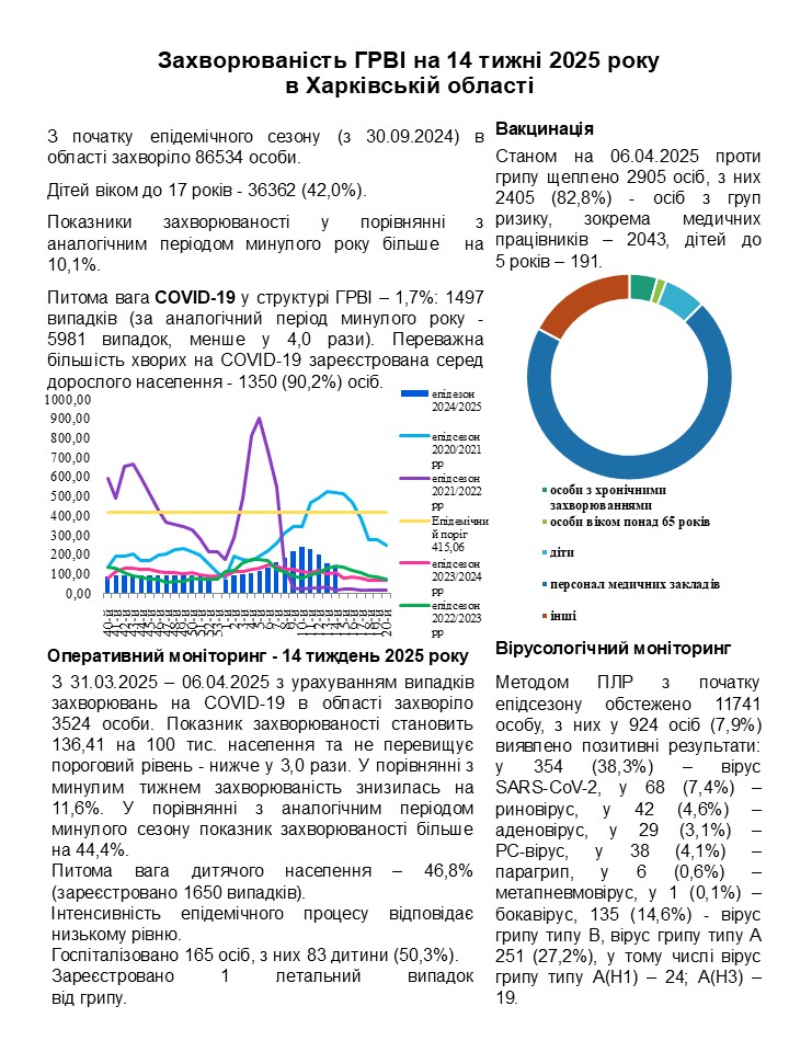 Захворюваність ГРВІ на 14 тижні 2025 року в Харківській області