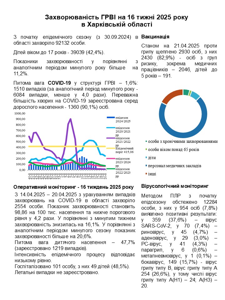 Захворюваність ГРВІ на 16 тижні 2025 року в Харківській області