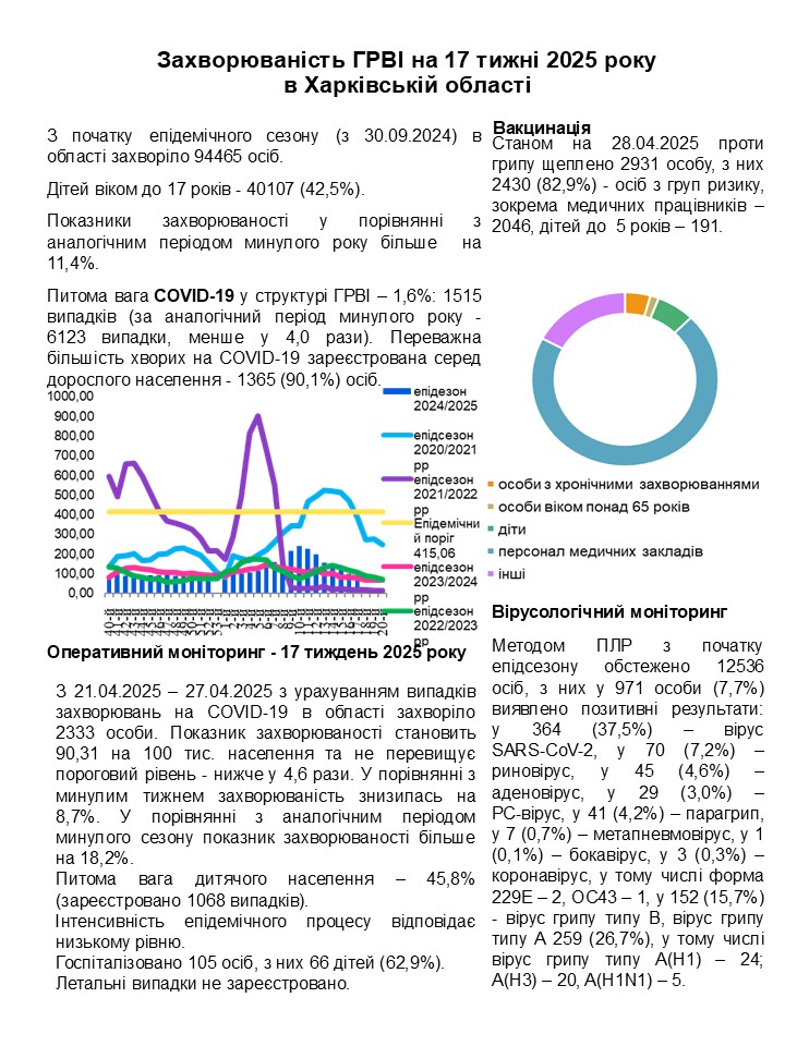 Захворюваність ГРВІ на 17 тижні 2025 року в Харківській області