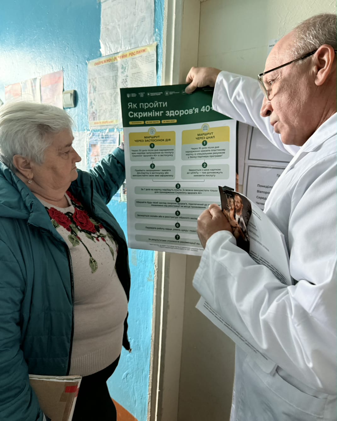 Майже 60 жителів громади пройшли скринінг на соціально значущі інфекційні хвороби, зокрема на туберкульоз (анкетування, здали проби мокротиння, пройшли рентгенографію органів грудної клітки) та скористалися можливістю швидко й без черг перевірити артеріальний тиск, сатурацію, рівень цукру в крові, індекс маси тіла.