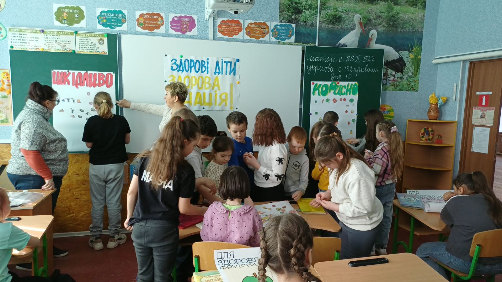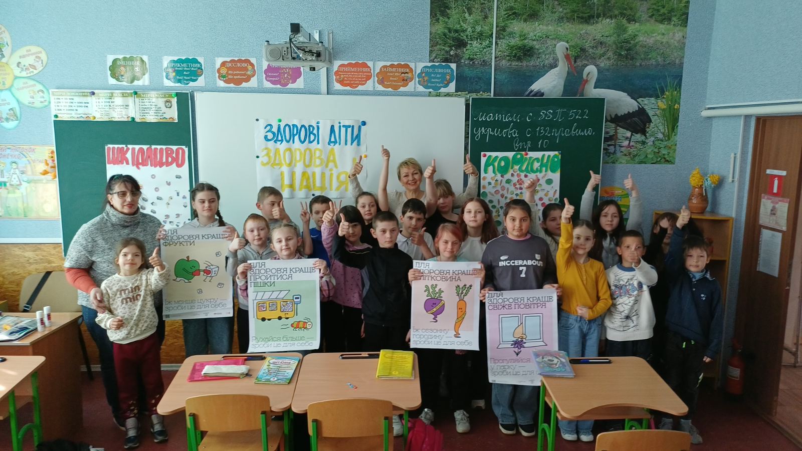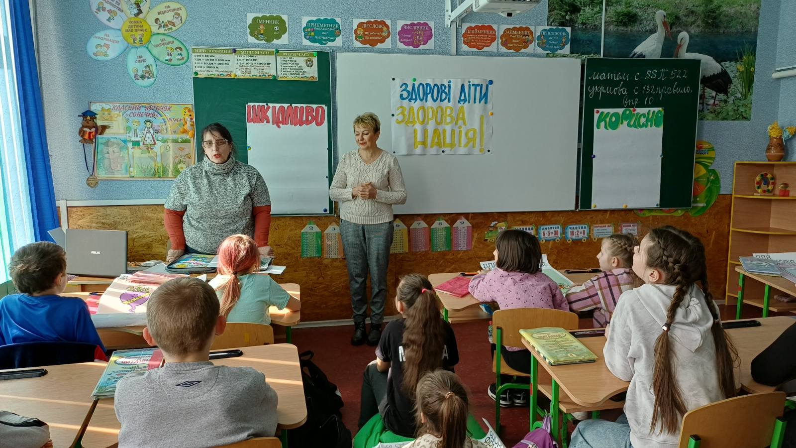 Особливу зацікавленість викликала практична частина. Школярі із задоволенням брали участь у грі «Корисне – Шкідливе», розгадували загадки, активно висловлювали свої думки та обговорювали власні рішення та дії. У доступній та інтерактивній формі вони засвоїли важливе: здоровий спосіб життя починається з правильного харчування та корисних щоденних звичок.